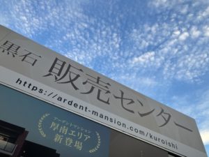 「アーデント黒石」の販売センターは、ゆめタウンへの通り沿いもあってか
