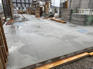 地中深くまで杭を打ち、埋め戻し、土間コンクリートという流れです。