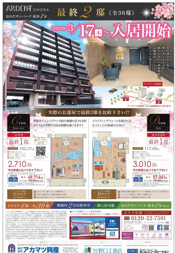 ご来場予約・資料請求・お問合せはアーデント小野田販売センターまで!