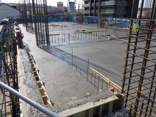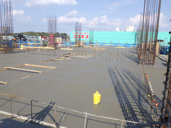 現在、1階部分の躯体工事が終わり、2階部分の躯体工事に入っています。