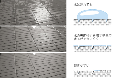 表面張力を壊す効果のある表面加工で、ぬめりやカビの発生を防止します!