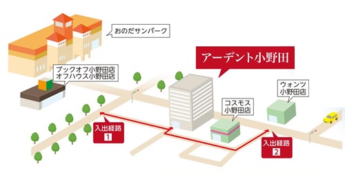 その他にも、現地の2方向出入口やお隣のコスモス小野田店様へ