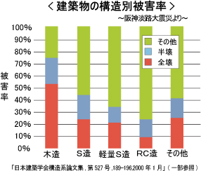 木造や鉄骨造の建築物に比べて、鉄筋コンクリート造(RC造)の被害状況が