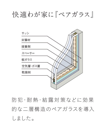 ペアガラスによる遮熱・断熱効果で エアコンを効率良く使うことができるので