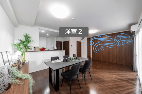 扉を開けてリビングのエアコンを付ければ、洋室のお部屋はエアコン要らず!