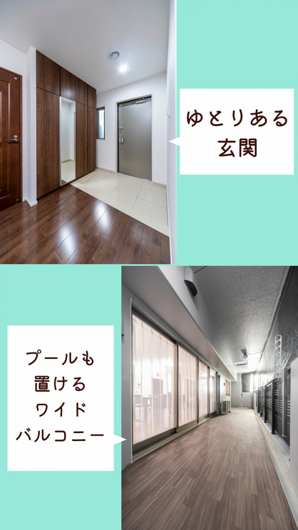 外遊びの道具を置くのにちょうどいい広々アルコープなど、