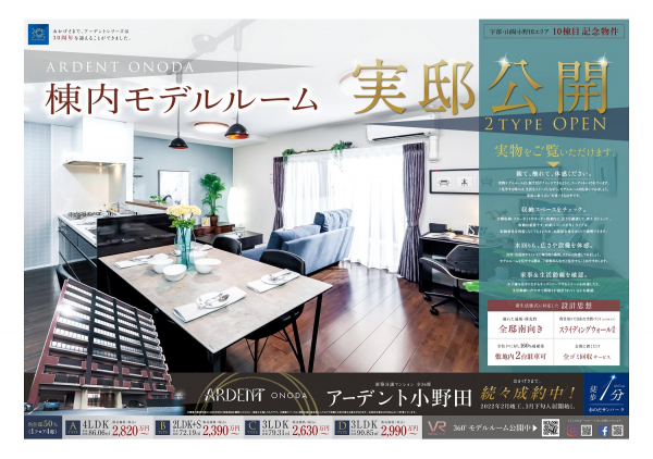 7/31(土)より、アーデント小野田棟内モデルルームが2階部分にオープン致します!