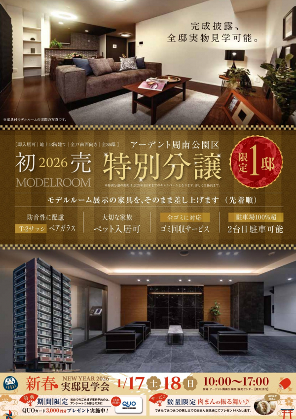 新春イベントとして、モデルルーム特別分譲+ご来場QUOカード進呈イベントを開催いたします!